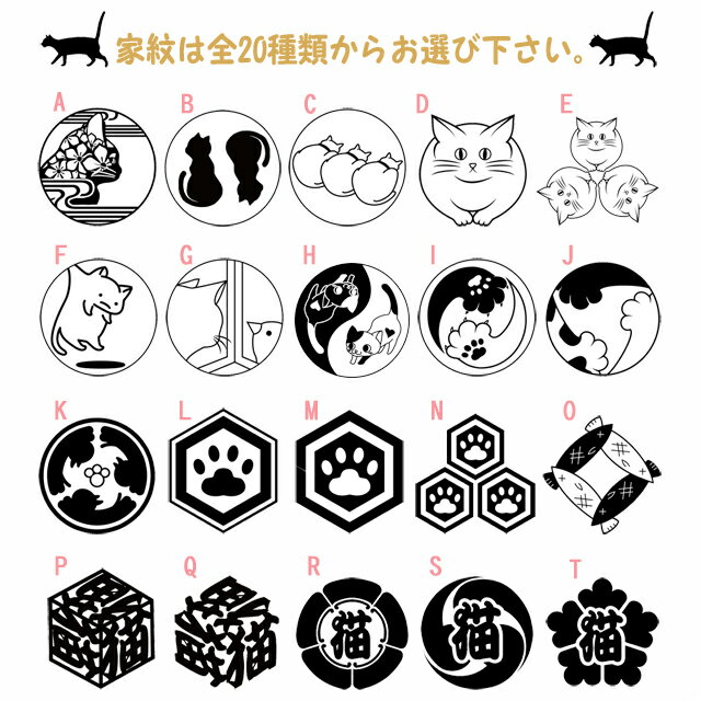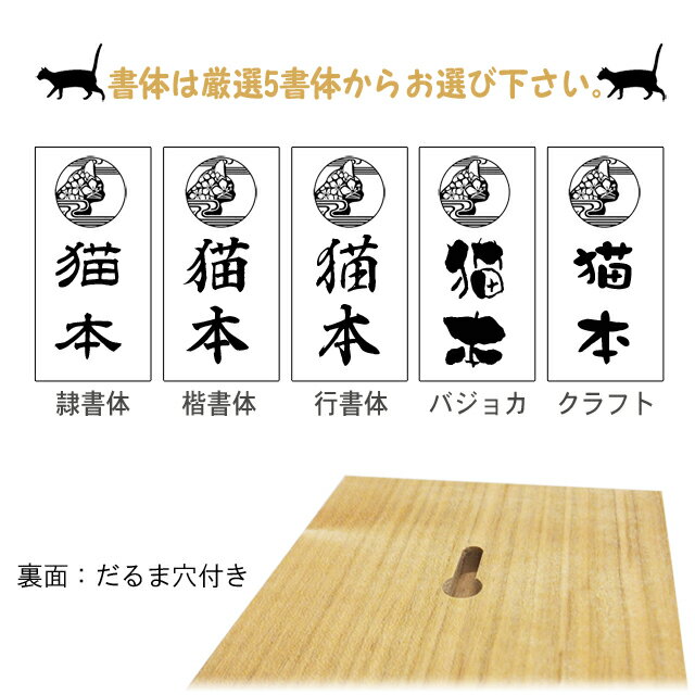 特徴 猫のイラスト家紋がかわいい、ネコ好きのための天然木表札。